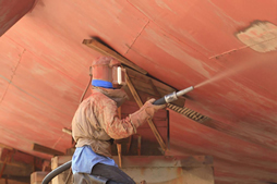 利用高速砂流的沖擊作用清理和粗化基體表面的過(guò)程。采用壓縮空氣為動(dòng)力,以形成高速?lài)娚涫鴮娏希ㄌ蓟?,剛玉,石榴石,銅礦砂、石英砂、鐵砂、海南砂)高速?lài)娚涞叫枰幚淼墓ぜ砻?,使工件表面的外表面的外表或形狀發(fā)生變化,由于磨料對工件表面的沖擊和切削作用,使工件的表面獲得一定的清潔度和不同的粗糙度,使工件表面的機械性能得到改善,因此提高了工件的抗疲勞性,增加了它和涂層之間的附著(zhù)力,延長(cháng)了涂膜的耐久性,也有利于涂料的流平和裝飾。